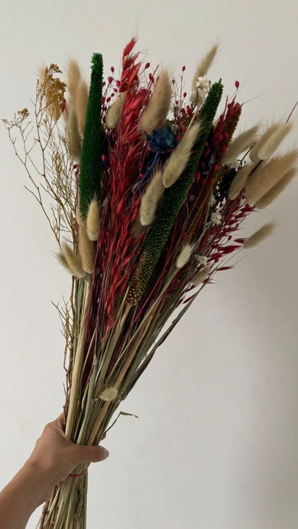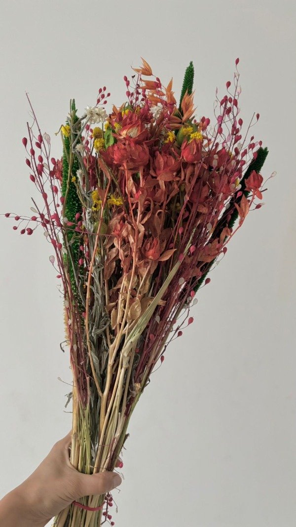 Una selección generosa de flores secas en variedad de colores y texturas. Ideal para emprendedores y amantes de las flores que disfrutan crear sus propios arreglos.
