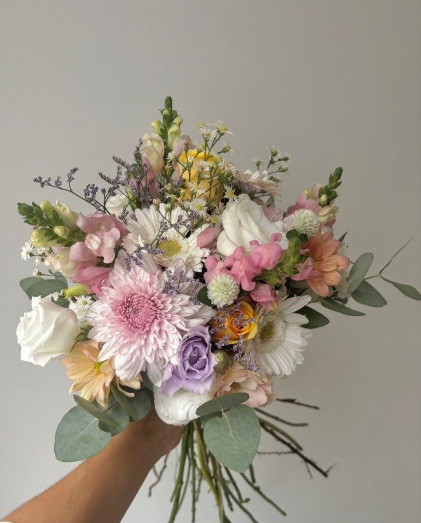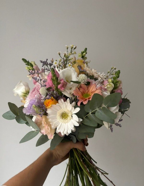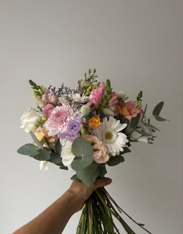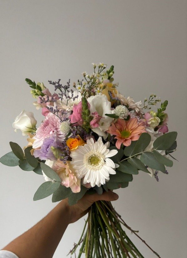 Ramo de flores frescas en tonos pasteles con variedad de flores de temporada